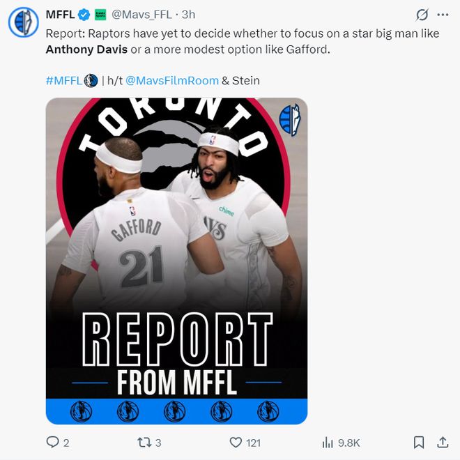 根据名记马克-斯坦恩的报道,猛龙并没有成为安东尼-戴维斯诚挚的追逐者,他们已经开始关注加福德对球队的改善,因为得到加福德的代价更小,而且加福德的合同金额也小得多。