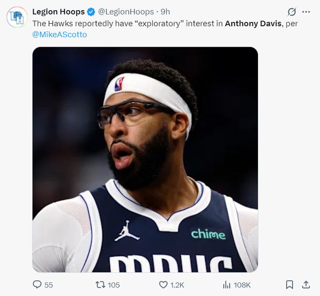 根据Hoops记者麦科-斯科特的消息,亚特兰大老鹰队已经开始对安东尼-戴维斯进行试探性的报价。浓眉本赛季虽然有所发福但还是保持了一个不错的竞技状态,老鹰目前东部第七有希望冲击前六的席位,他们想继续提升阵容。