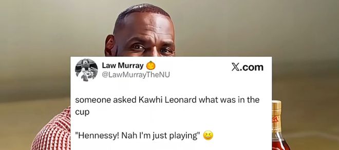 莱昂纳德说:“(我在喝)轩尼诗,呐!我刚刚在打球”。